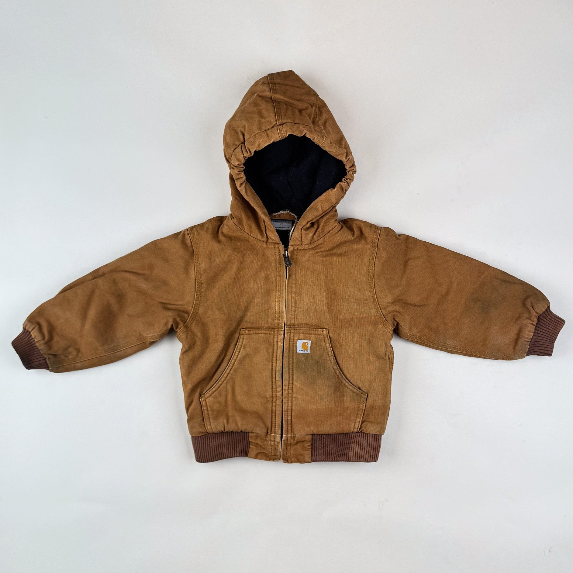 Coolest Carhartt workwear jacket in size 3T. Please see the measurements to ensure the right fit. The jacket is in great quality, but it does show some signs of wear that we have not attempted to remove.