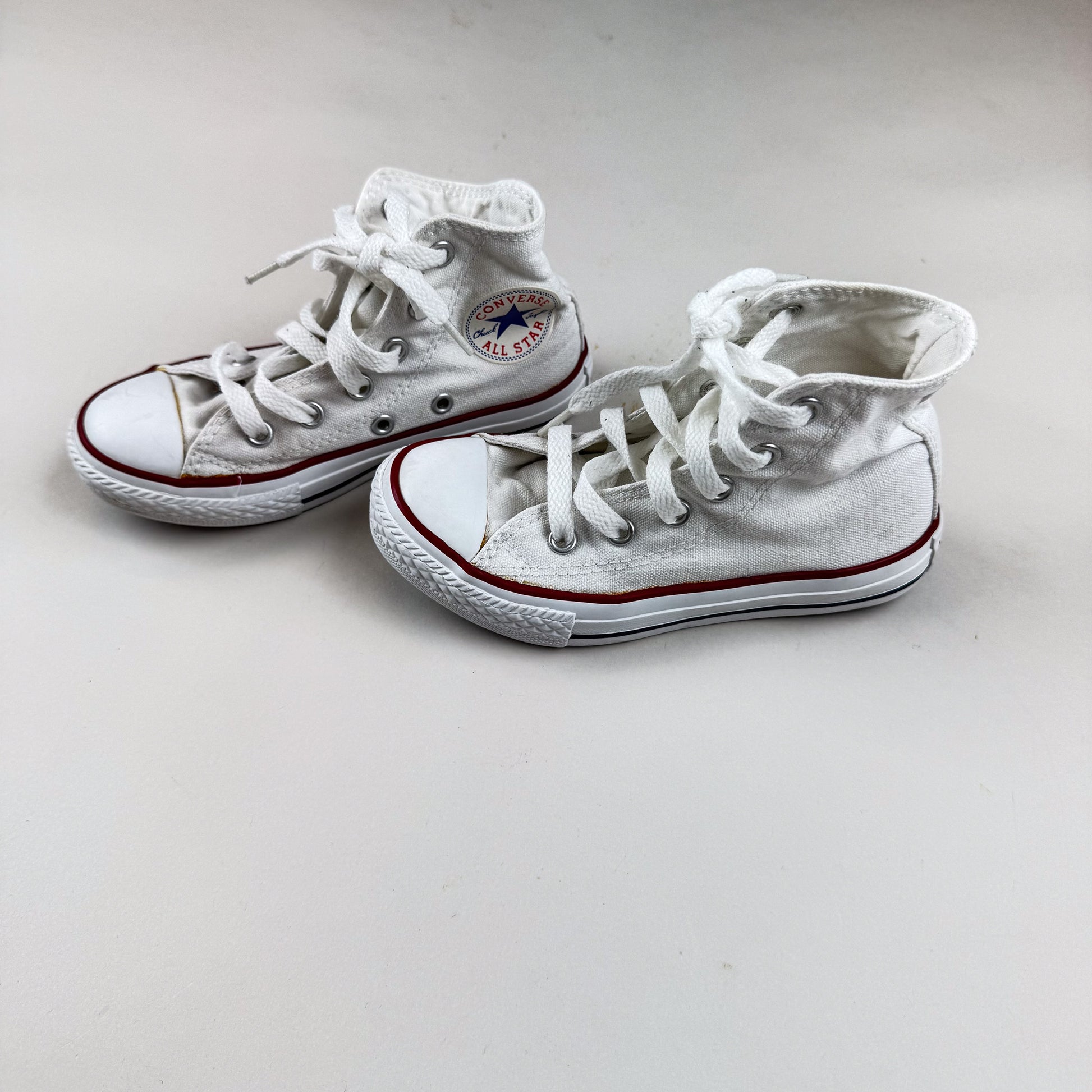 Coolest white high top converse sneakers in size 28. The insole measures 17 cm and the shoes are in great condition.
