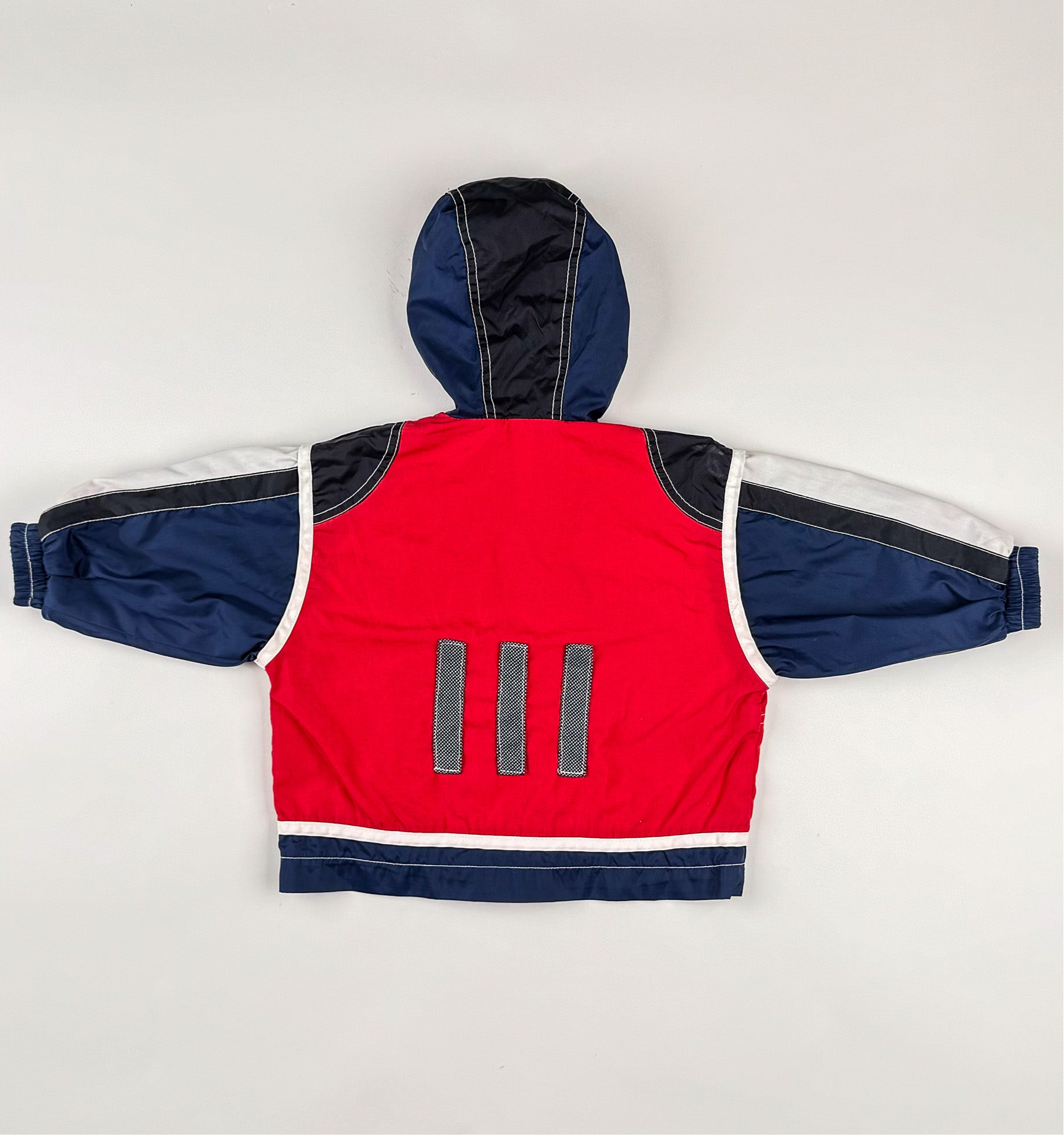 Coolest jacket in size 74. The jacket is perfect for summer as well as fall and spring with a sweater underneath. The jacket is lined with a thin grey fabric and in very good condition.