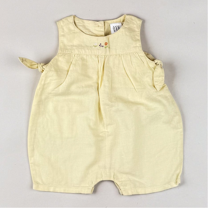 Cutest yellow romper with embroidered flowers on the chest from GAP in size 3-6 mo. The romper is in great quality and condition.
