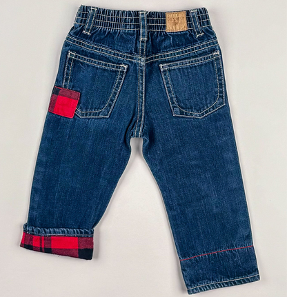 Cutest jeans from Oshkosh in size 12 mo. The pants are the most perfect pair of jeans for the holiday seasons. The pants are in great condition and quality.