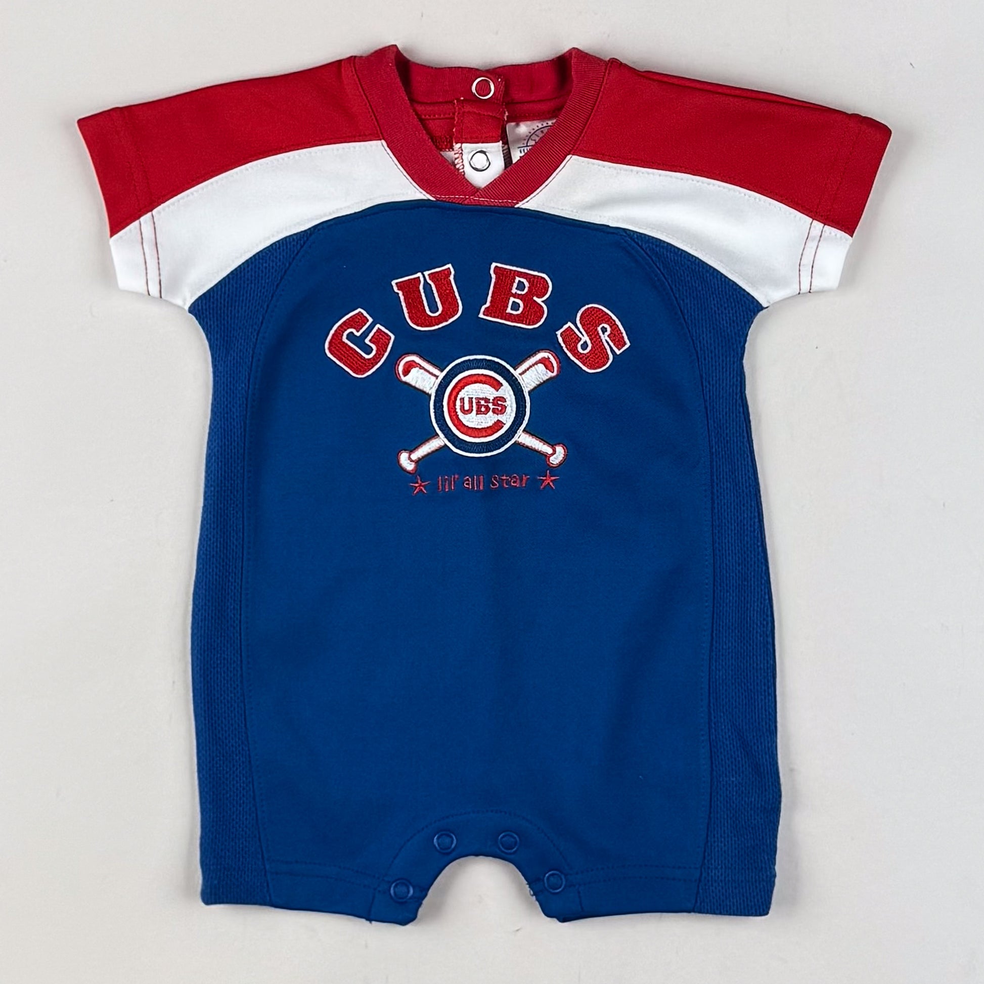 Coolest MLB Chicago Cubs baseball romper in size 3-6 mo. The romper is in great quality and condition. Wear this with tiny leggings or stockings under for the coolest look and year-round use.