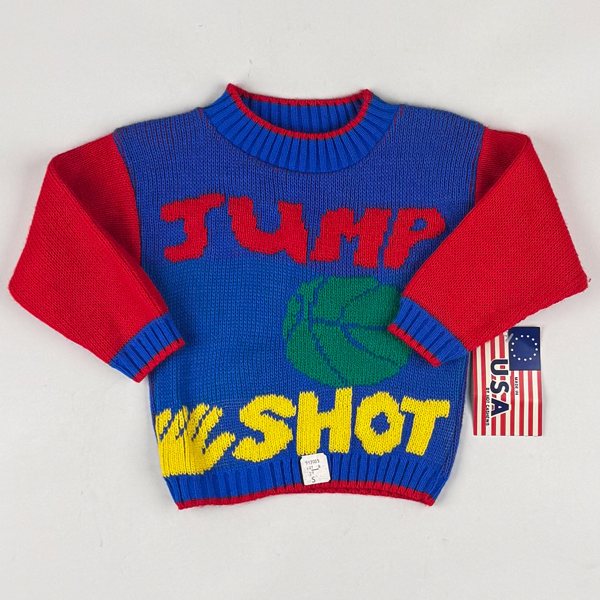 Coolest vintage sweater from Hot Cashews in size 2T, however, it runs small and would be a better fit for size 86 or even smaller with a oversize fit. The material of the sweater is 100% acrylic and it is new with tag.