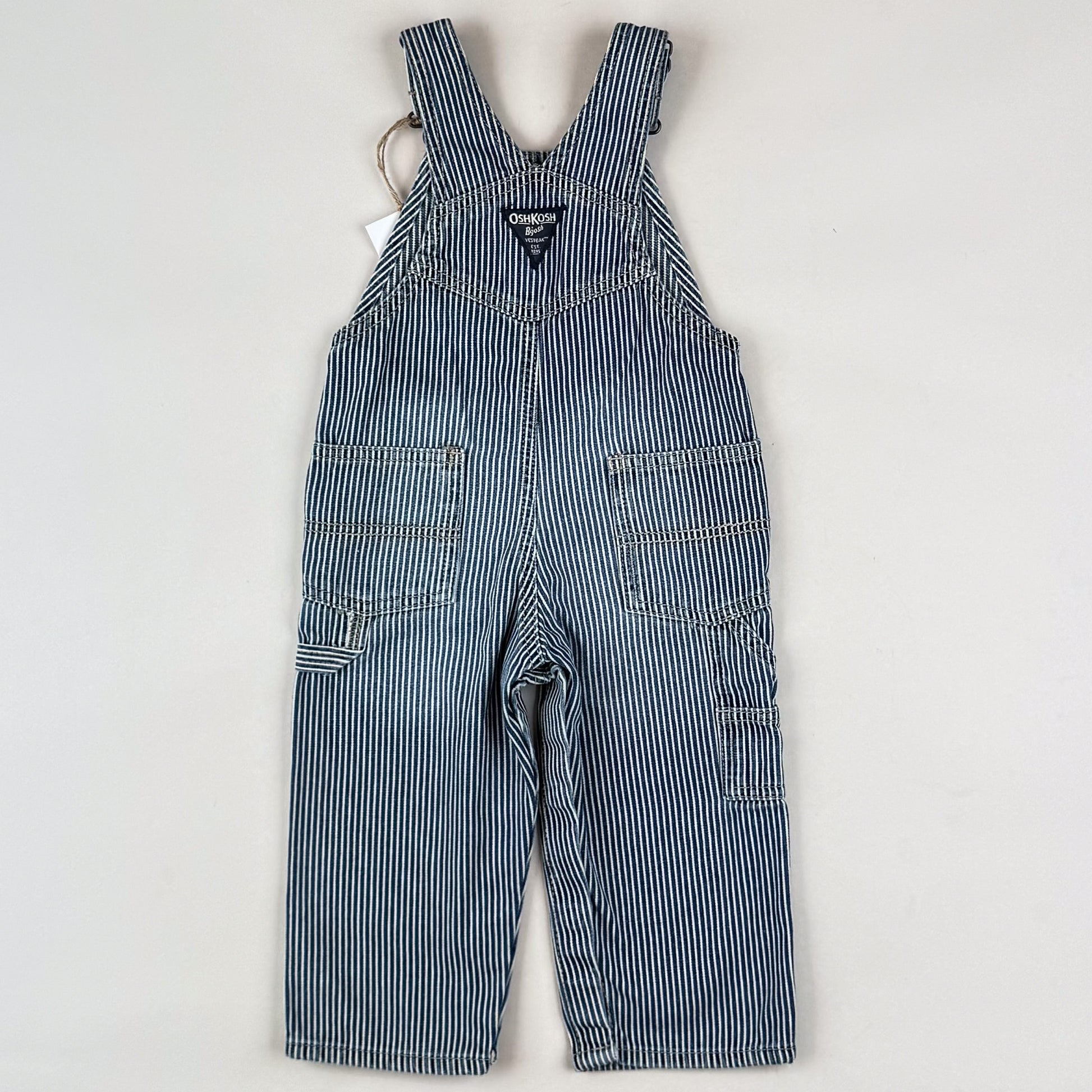 Coolest hickory stripe overalls from OshKosh in size 18 mo. Please see the measurements to ensure the right fit. The overalls are in great quality and condition.