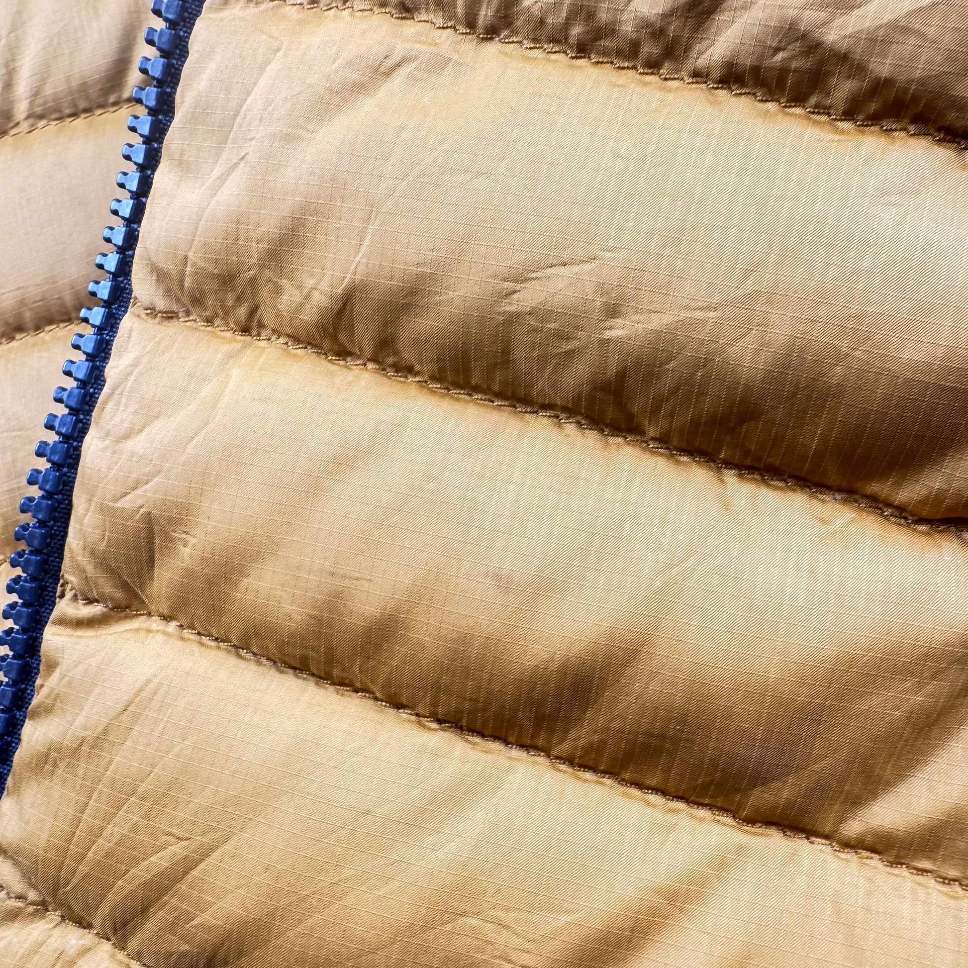 Coolest light and reversible puffer jacket from Patagonia that we believe would be a great fit for size 92. We can't seem to find the size tag, so please see the measurements to ensure the right fit. The jacket is in great quality and condition, but it does have some minor faded stains on the yellow side of the jacket that we have not attempted to remove and it does smell a bit of perfume, which we believe would be improved with a round of rodalon treatment. Please see the pictures and use the zoom function to have closer look.