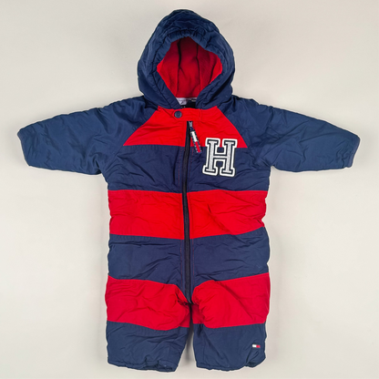 Coolest striped snowsuit from Tommy Hilfiger in size 6-12 mo. Please see the measurements to ensure the right fit. The snowsuit is in great quality and condition.