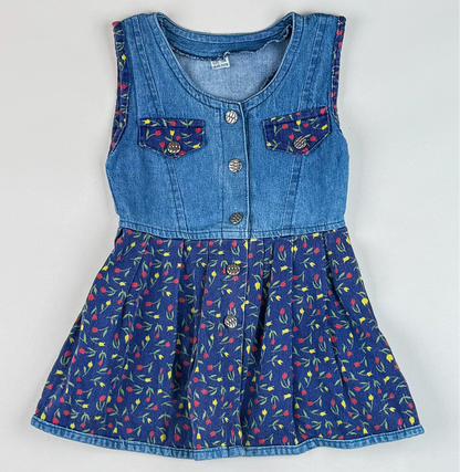 Cutest vintage denim dress in size 104, but it runs small so it would be a better fir for size 98. The dress is in great condition.