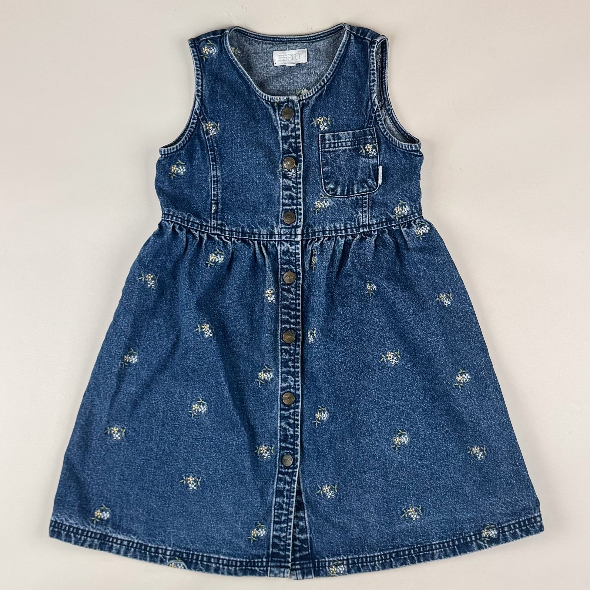 Cutest vintage denim dress with embroidery from Esprit in size 116/122. Please see the measurements to ensure the right fit. The dress is in great quality and condtion.
