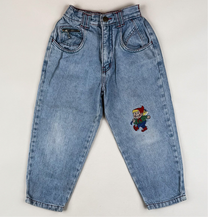 Coolest vintage jeans in size 104. The pants have the cutest embroidery on the left thigh and are in great quality and condition.
