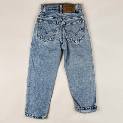 Coolest vintage Levi's 550 orange tab jeans in size 6s, however, we believe they would be a better fit for size 104 with the legs rolled up a bit. Please see the measurements to ensure the right fit. The jeans are from 1996 and in great quality and condition.