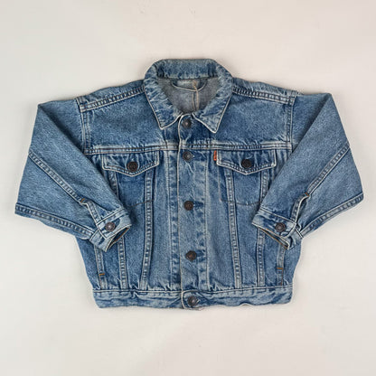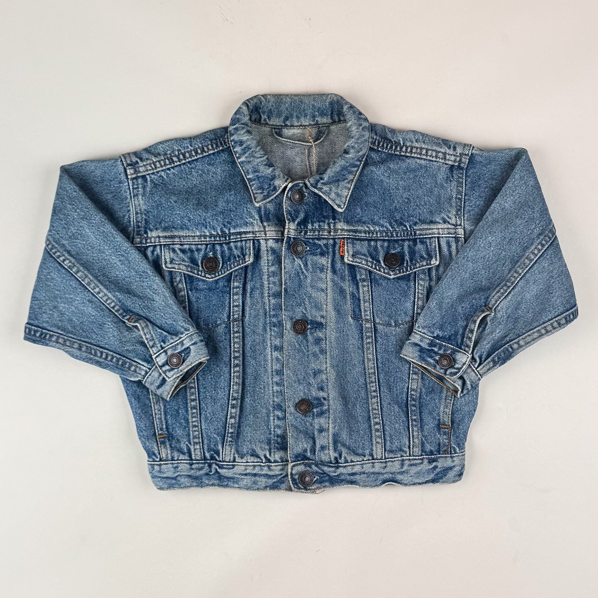 Coolest vintage orange tab Levi's denim jacket in size 104. The size tag is missing so please see the measurements to ensure the right fit. The jacket is in great quality and condition.