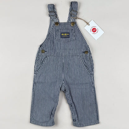 Coolest vintage hickory striped overalls from OshKosh in size 12 mo, however, we believe they would also be a great fit for size 74. Please see the measurements to ensure the right fit. The overalls are in great quality and condition.