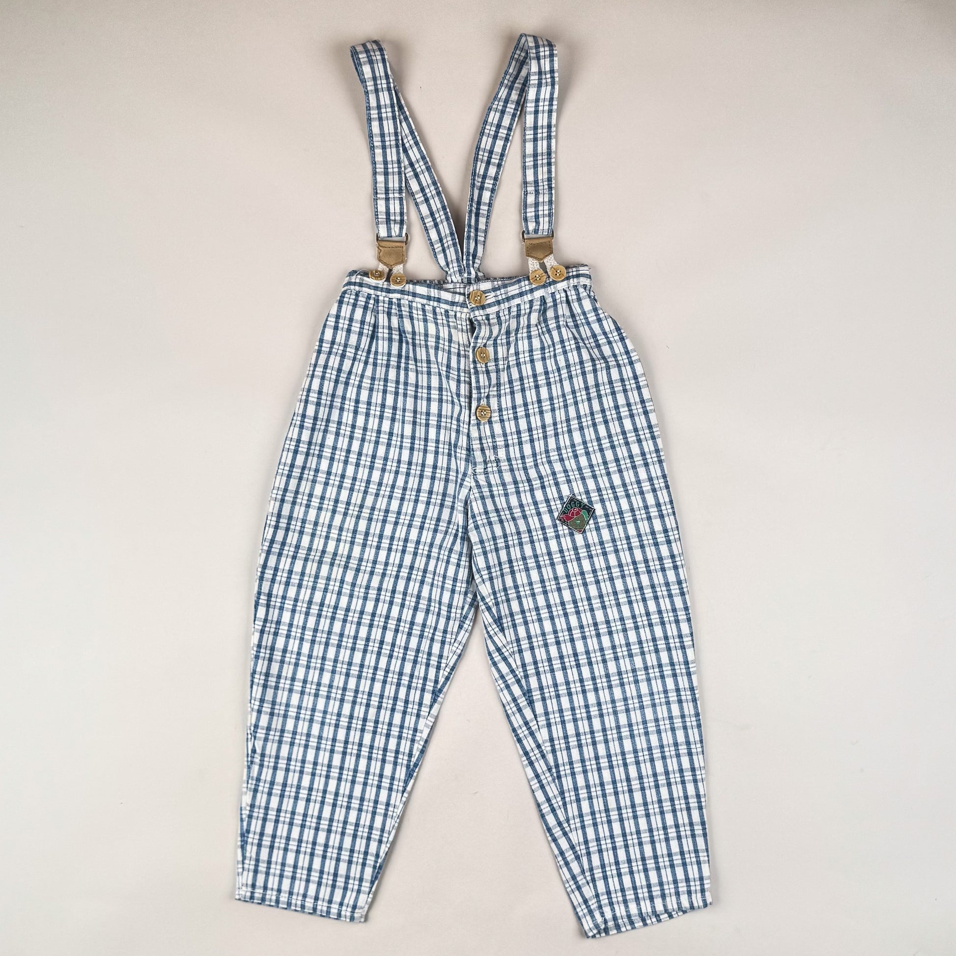 Coolest vintage suspender pants in size 100, that we believe would be a great fit for size 104. The suspenders can easily be cut off, if you prefer to use the pants as regular pants. The pants are in great quality and condition.