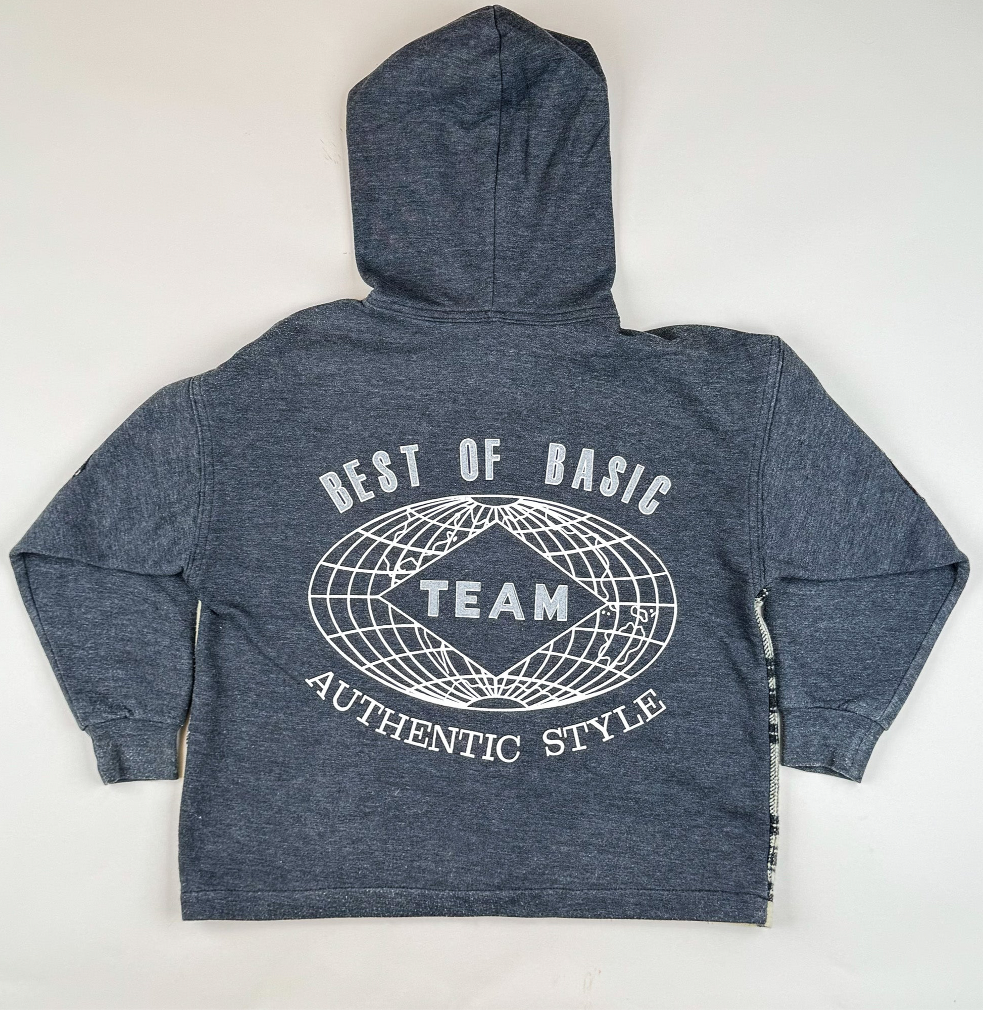 Coolest vintage sweatshirt with a huge print on the back. The shirt is the perfect mix of sweatshirt meets flannel shirt. There is no tag i the shirt, but we believe it would be a great fit for size 128/134 with a boxy fit. Please see the measurements. The shirt is in great condition and quality.